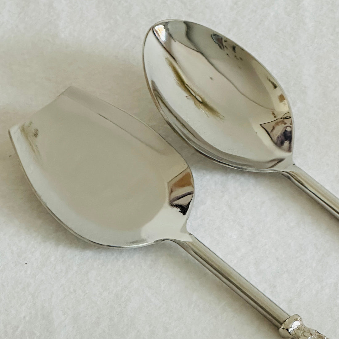 Elevate your dining experience with our exquisite set of two serving spoons, meticulously crafted from...