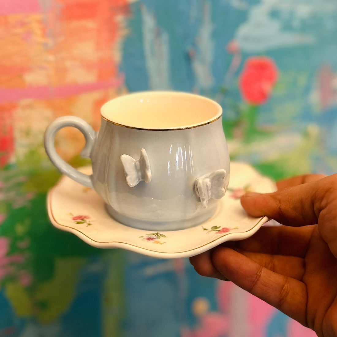 Fluttering Dreams – Bone China Cup & Saucer Set of Six Delicate, dreamy, and full...