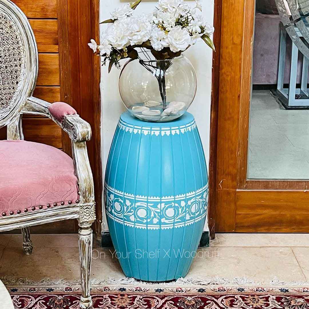 Knight Home Jorell Lace Cut Iron Accent Table, Teal Includes: one (1) Table Dimensions: 12.25...