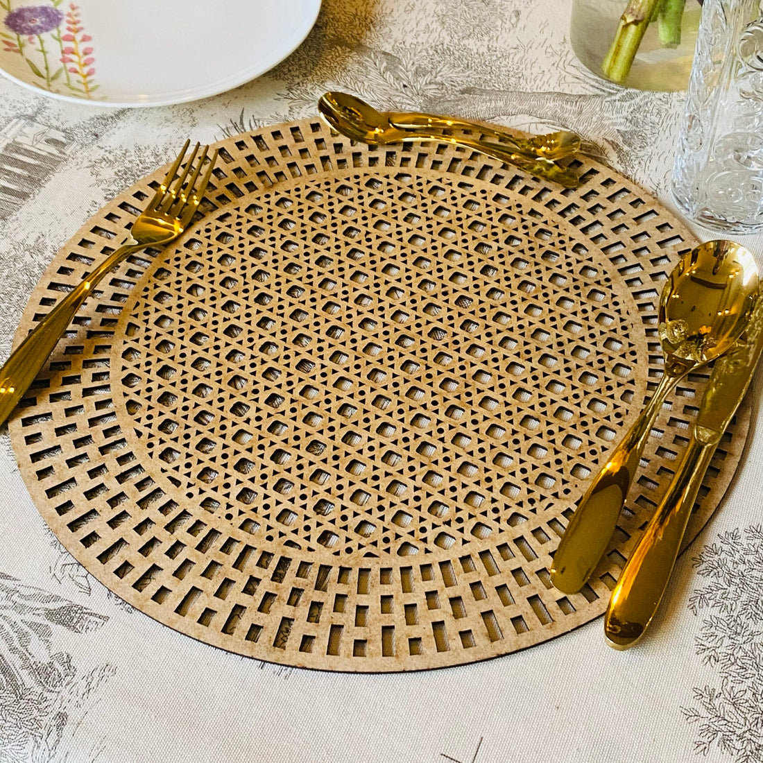 "Transform your dining experience with our uniquely crafted wooden laser-cut plate charger. Embrace rustic authenticity...