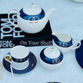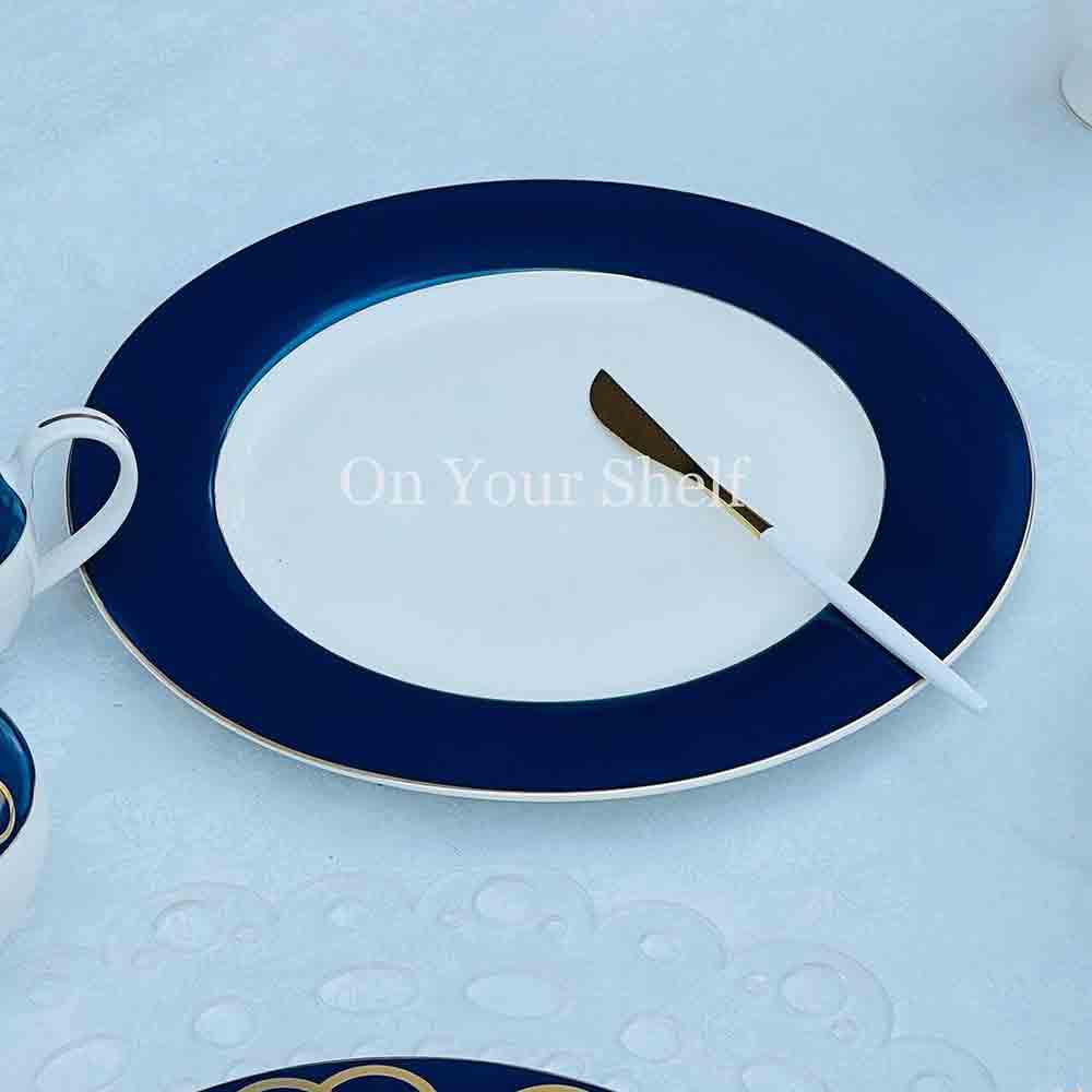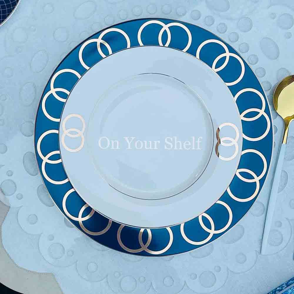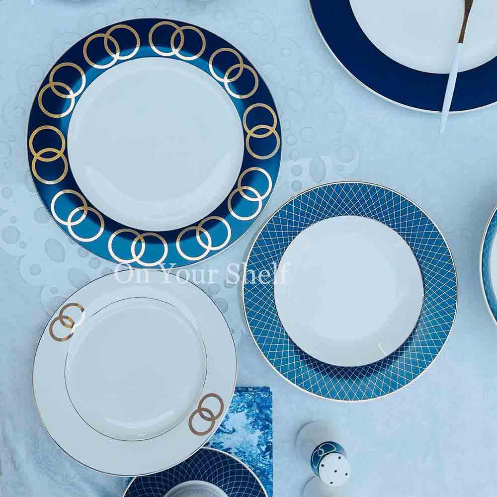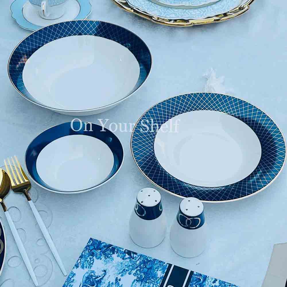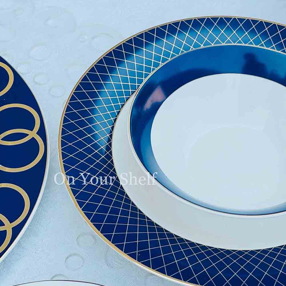 Step into sophistication with the Angela Royale Blue Collection, a masterpiece of modern geometry and timeless luxury. Each piece is crafted from premium quality porcelain, accentuated with a deep royal-blue lattice pattern and delicate gold detailing—a true statement of elegance on your dining table.
