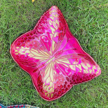 Butterfly Glass Platter Fuschia and Gold 34cm