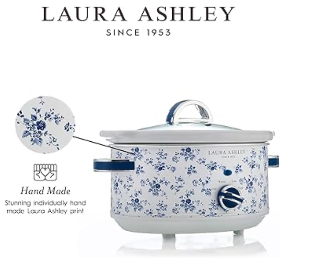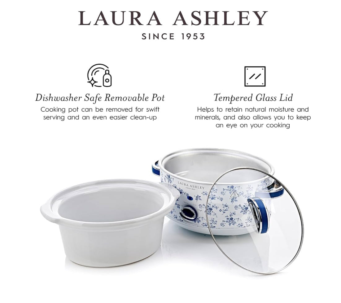 - Elegant Design, Worry-Free Cooking: This slow-cooker is crafted with the beauty of our individually hand applied Laura Ashley China Rose designer print finish while enjoying the peace of mind that comes with 3-years manufacturer warranty