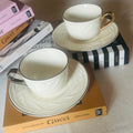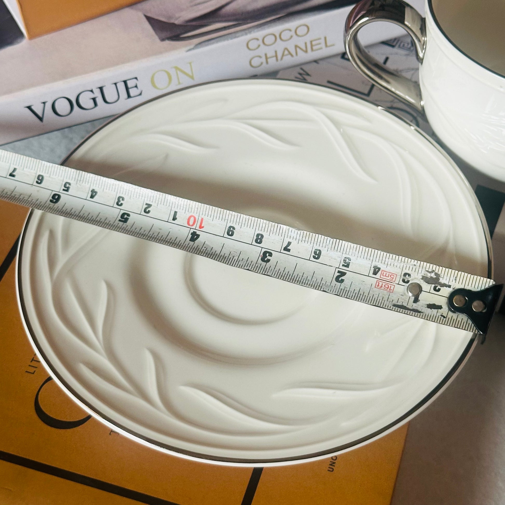 Elevate your tea time experience with our Leaf White Tea Cups set. Crafted with exquisite scribe design, each set includes six cups and saucers made from Bone China. Enjoy your tea in style and add a touch of luxury to your table. Get ready to sip and savor the finer things in life.