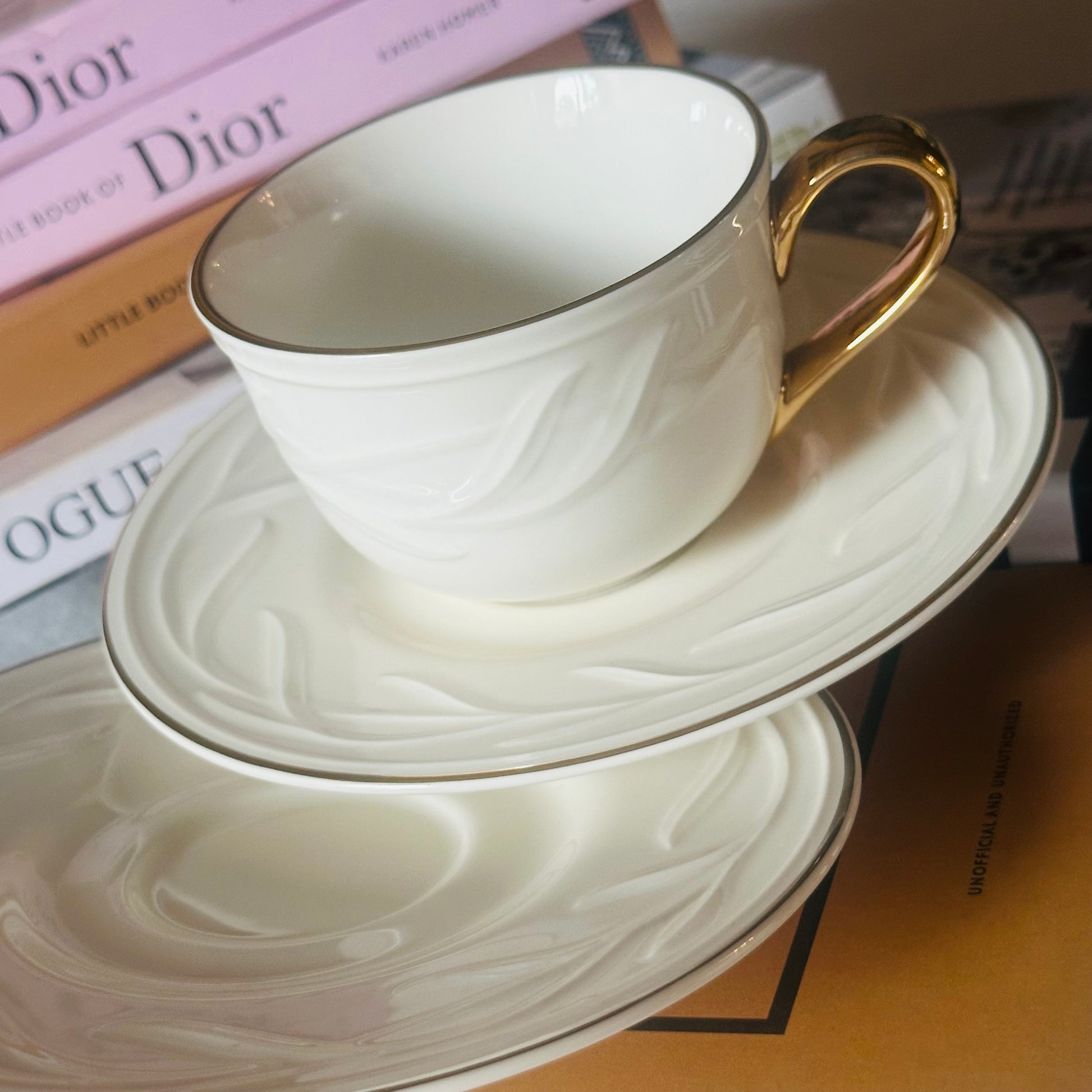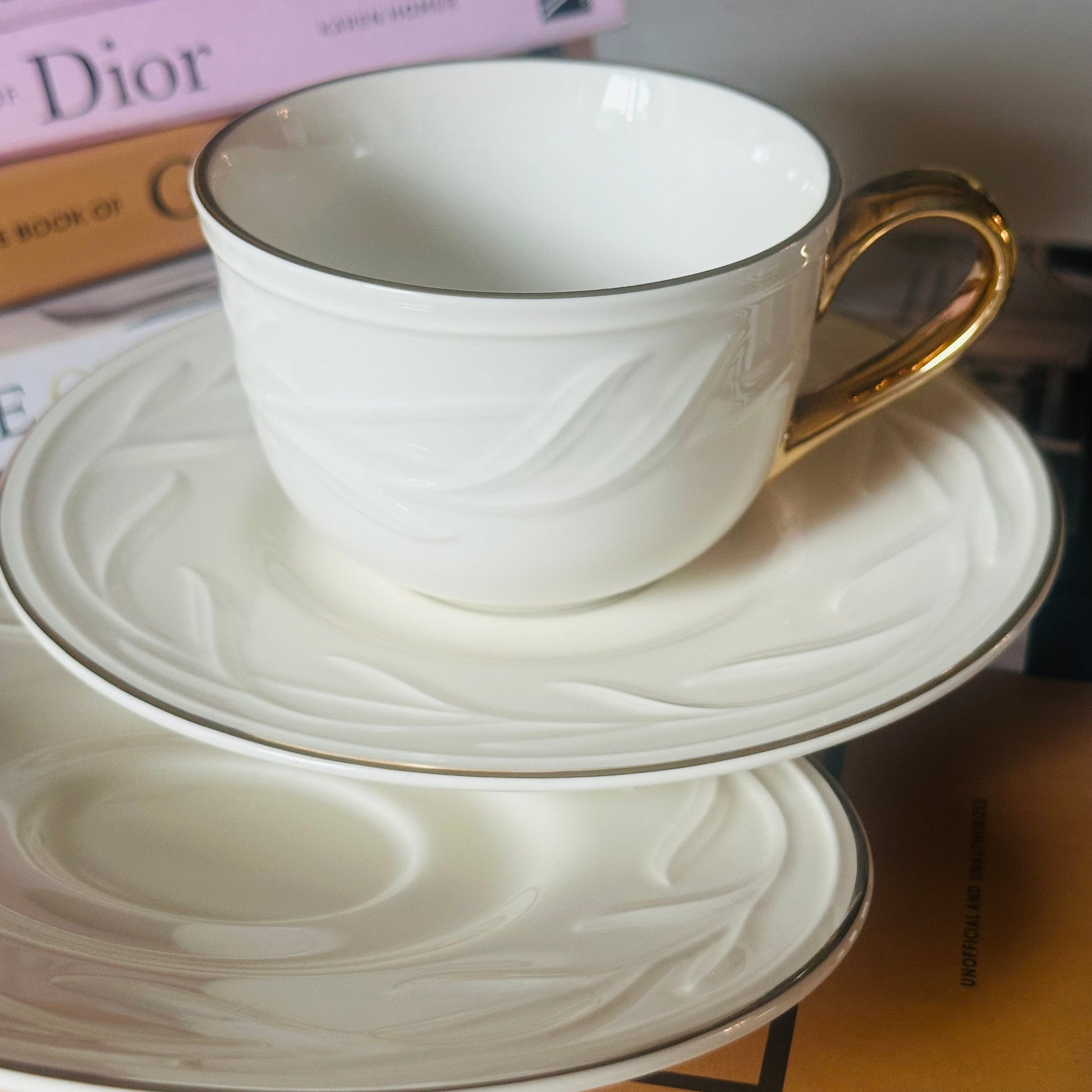 Leaf White Tea Cups (Set Of Six Tea Cups & Saucers)