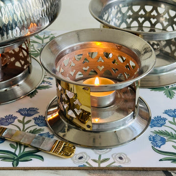 These silver metal burners are elegant and practical pieces designed to elevate your dining and serving experience. With their sleek metallic finish and intricate perforated designs, they are as decorative as they are functional.