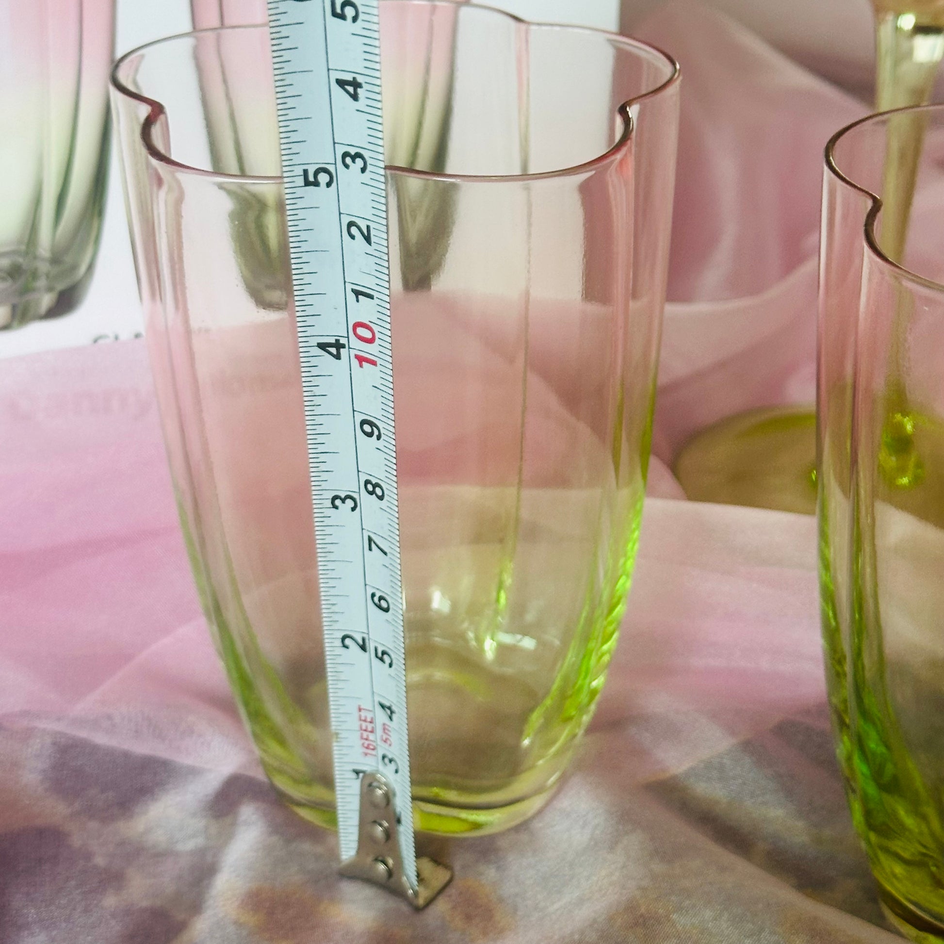 Elevate your everyday with our Petal Rim Tall Glasses, designed with a delicate scalloped edge that blooms like a flower. The soft ombré effect fades from refreshing green at the base to a gentle pink blush at the rim — a dreamy combination that adds instant charm to your table. Perfect for water, juice, mocktails, or any beverage that deserves a touch of beauty. Crafted with care, these glasses are sturdy yet elegant, making them ideal for both daily use and special occasions.