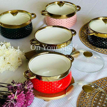 Taureen Serving Pot w/Glass Lid and Gold Polka Dots-Green