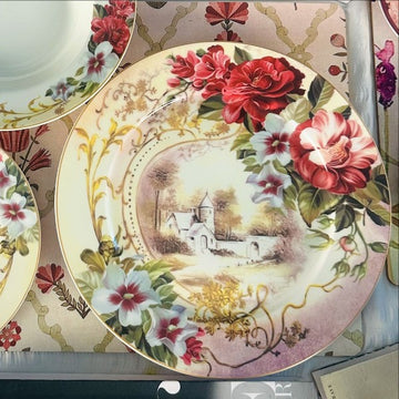 The Scenic Garden Harmony plate set includes 18 pieces, featuring beautiful and intricate designs of nature. Made with high-quality porcelain, the set adds an elegant touch to any dining experience. The durable and stunning designs make every meal a special occasion.