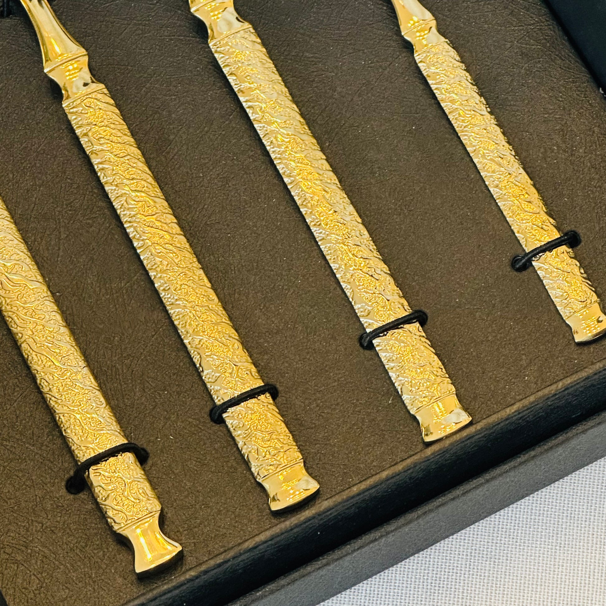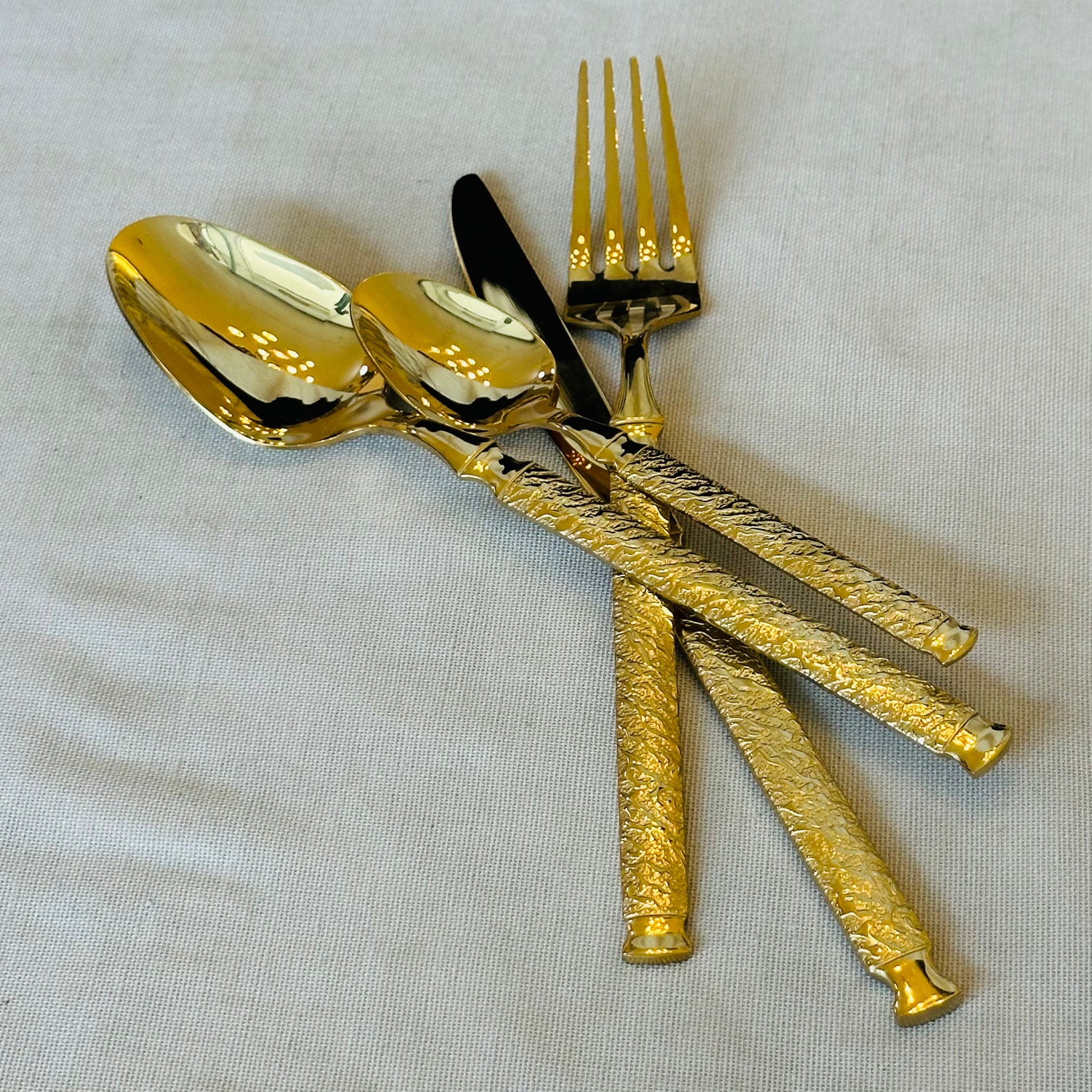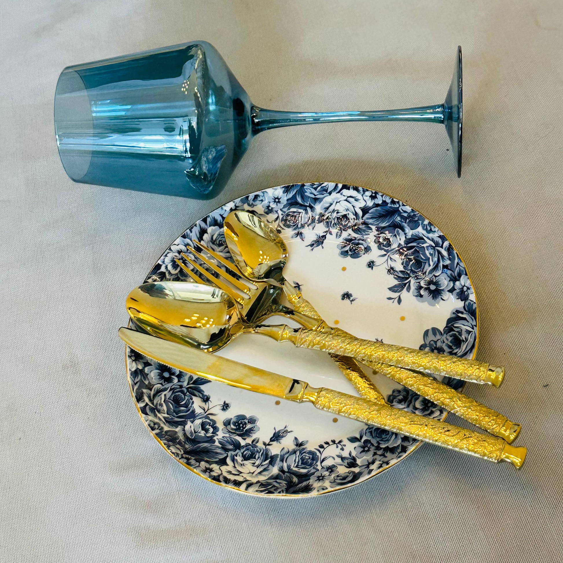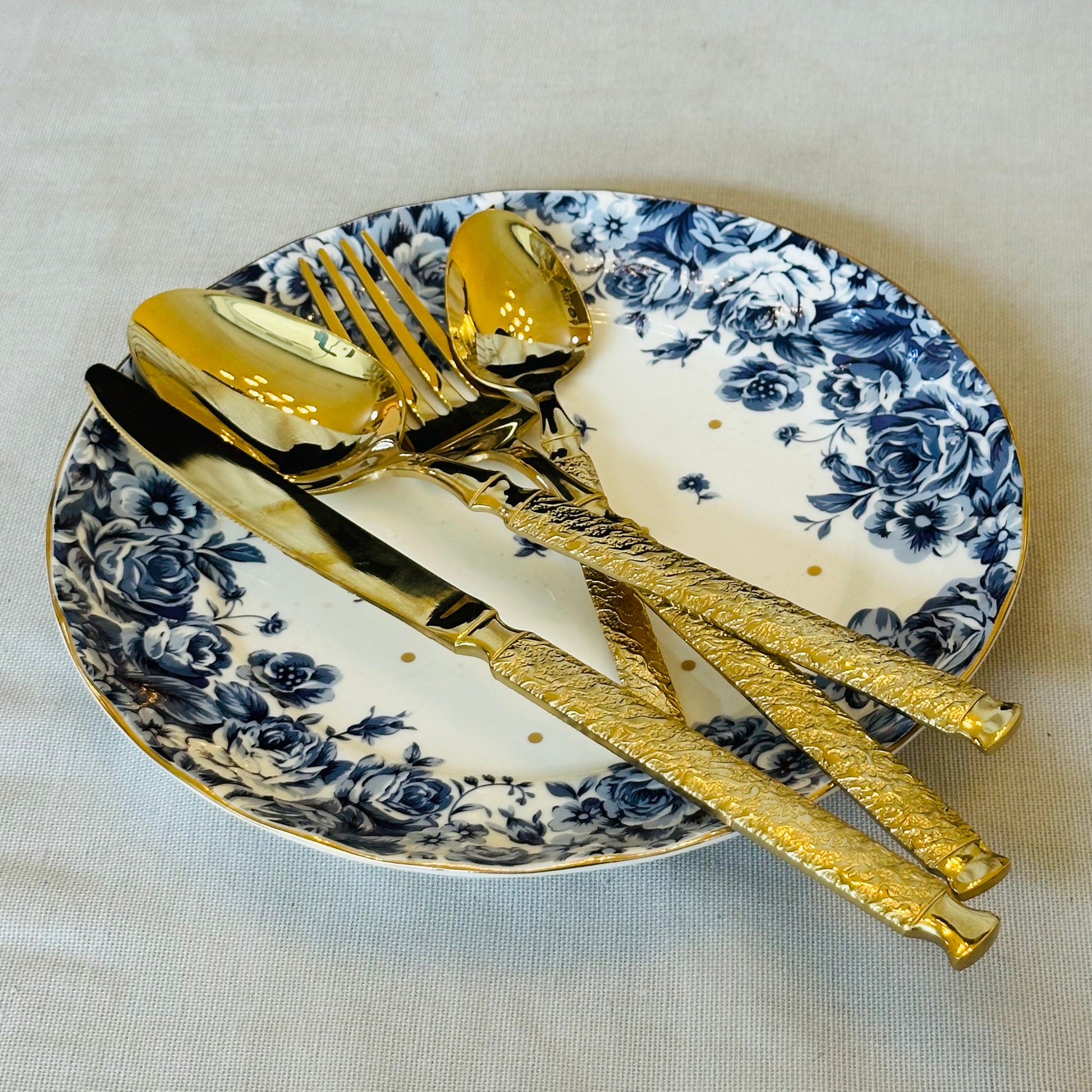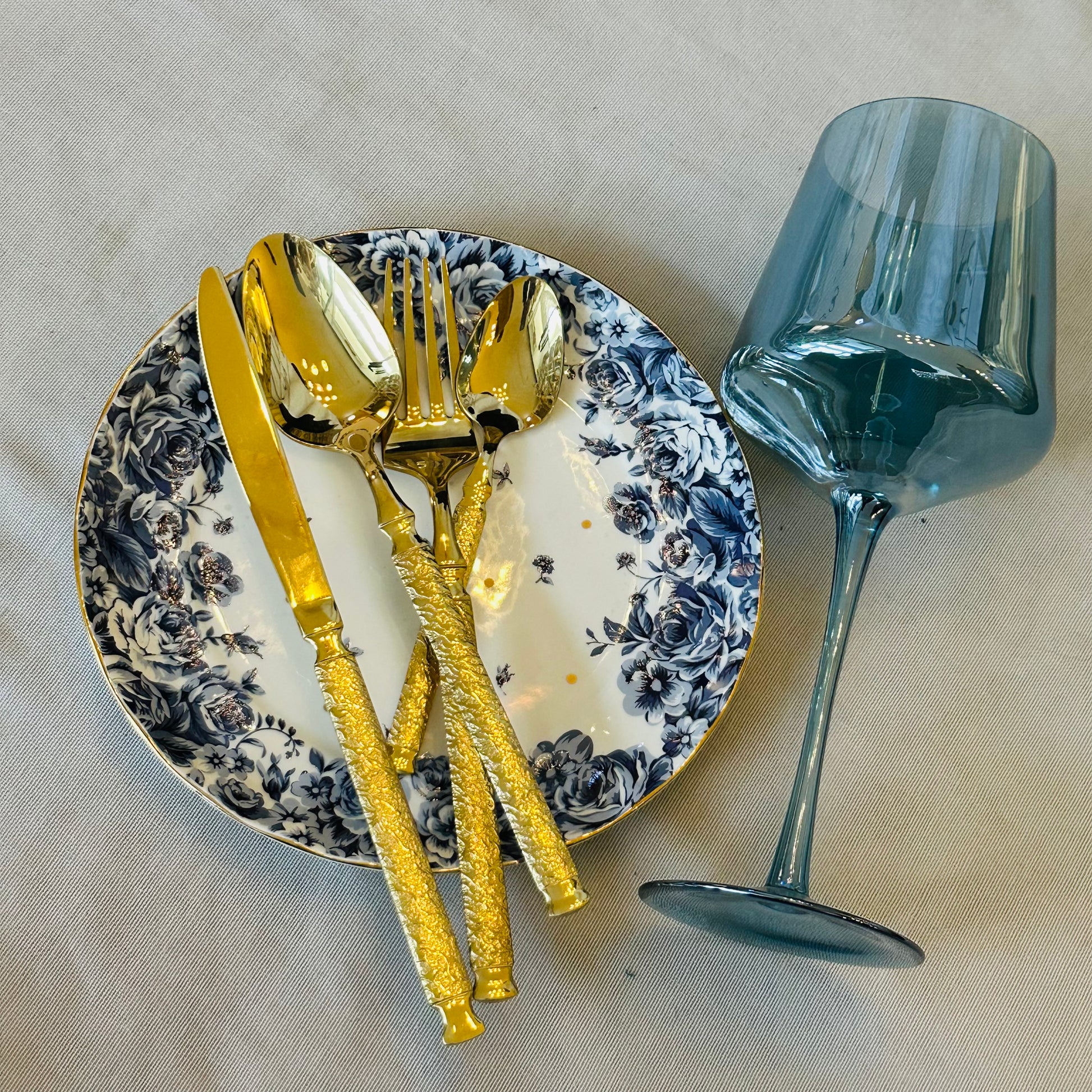The Regalia Gold Cutlery Set is designed for tables that appreciate quiet luxury and timeless detail. Finished in a warm, polished gold tone, each piece features an intricately textured handle paired with smooth, mirror-finished heads that feel refined and balanced in hand.
