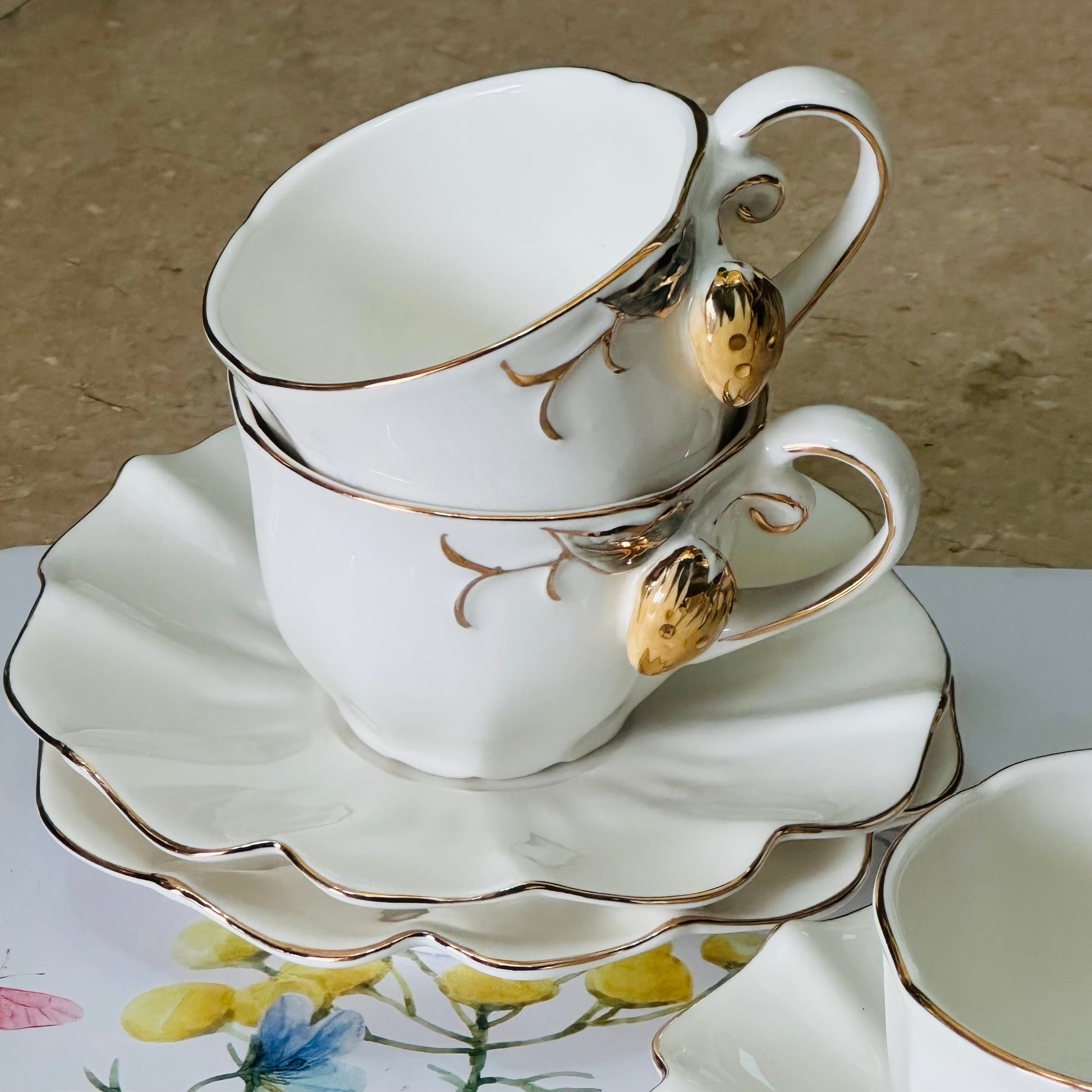 Strawberry Luxe Cups (Set Of Six Cups & Saucers)