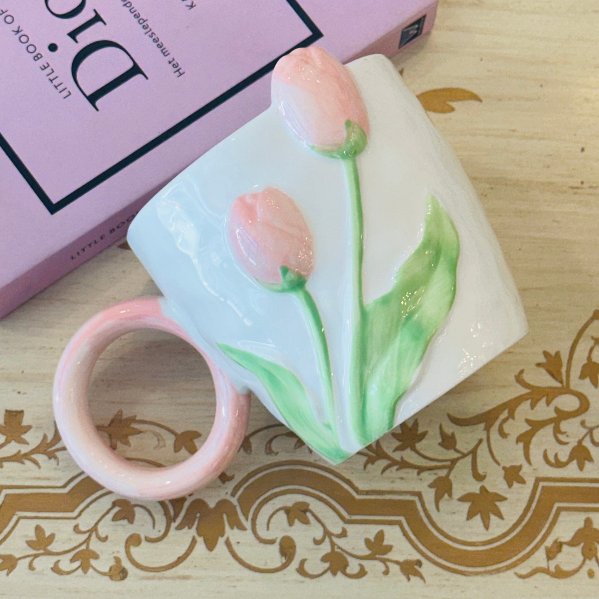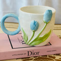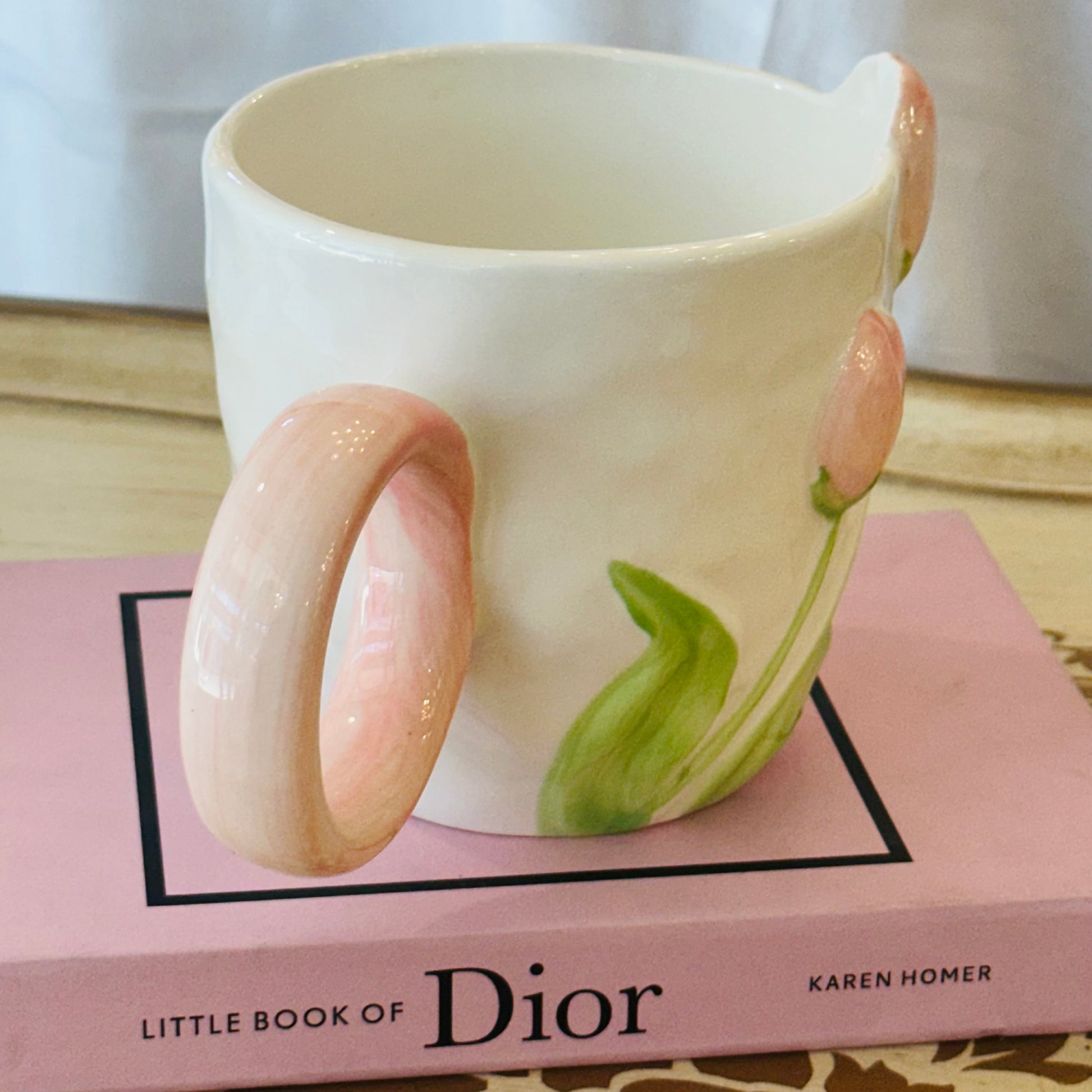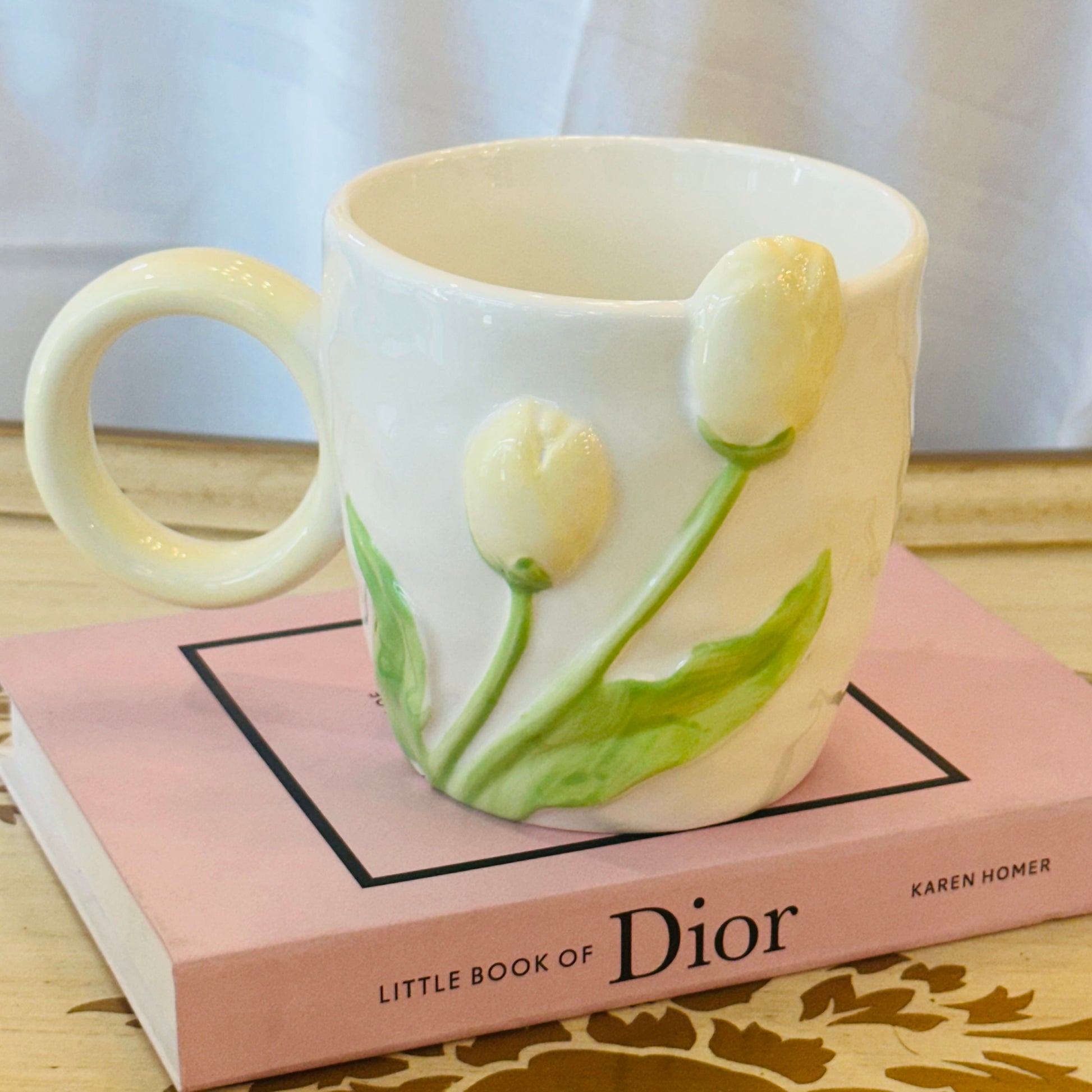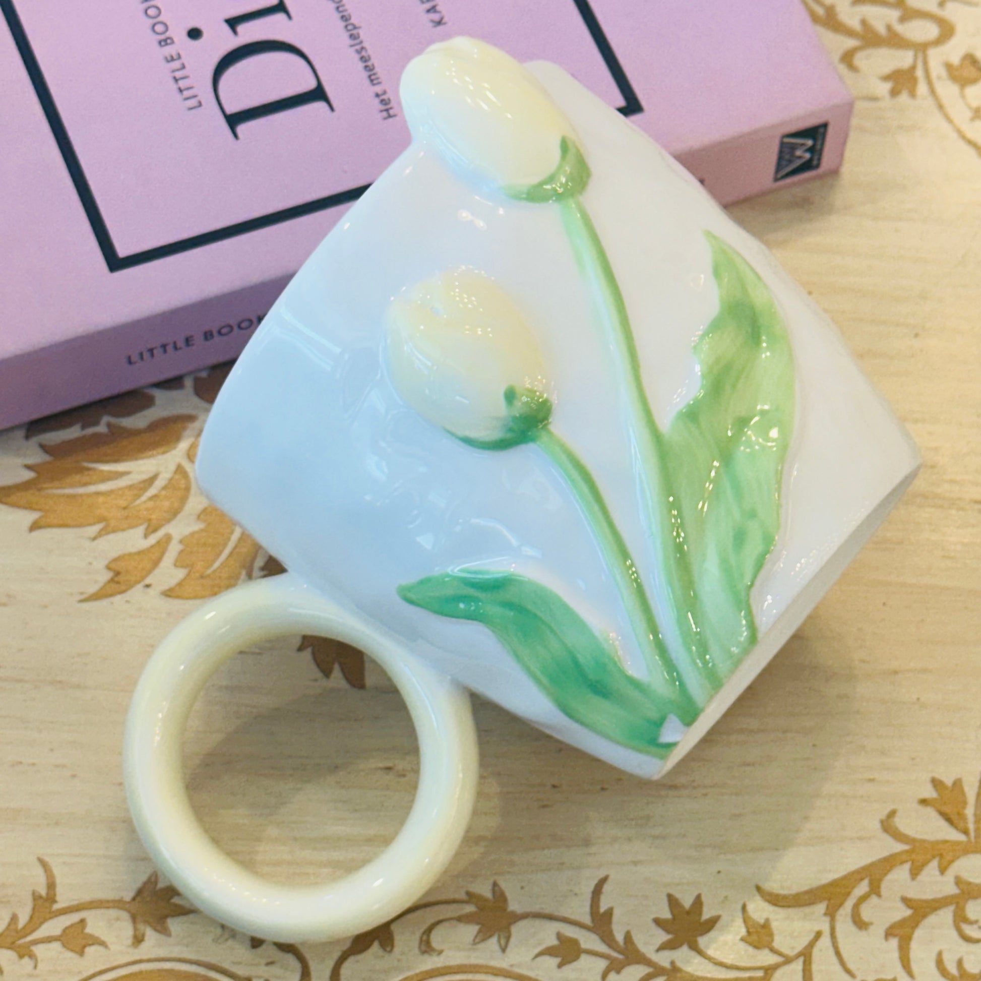 These stunning porcelain mugs with prudding 2D tulips adding complete beauty to the mug.