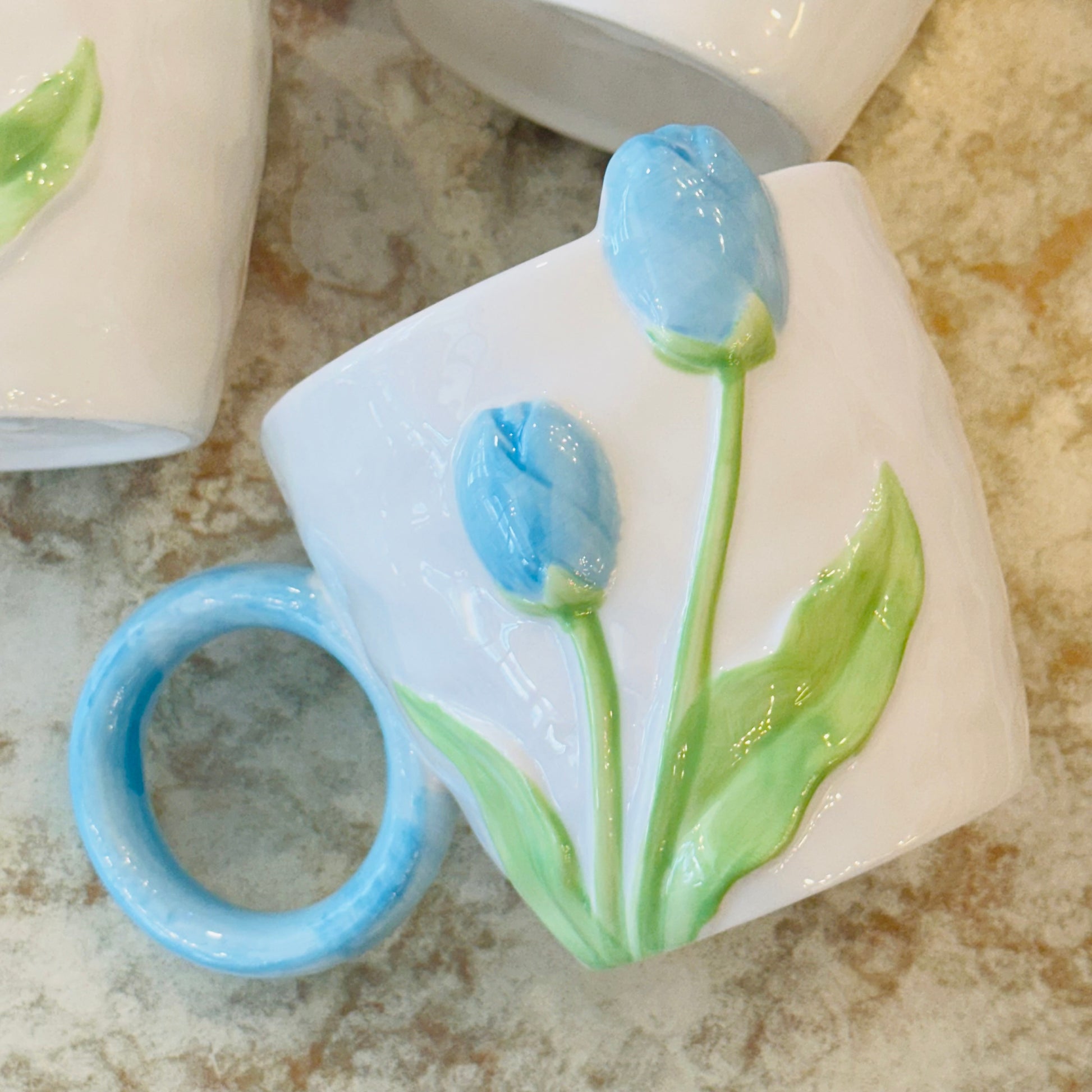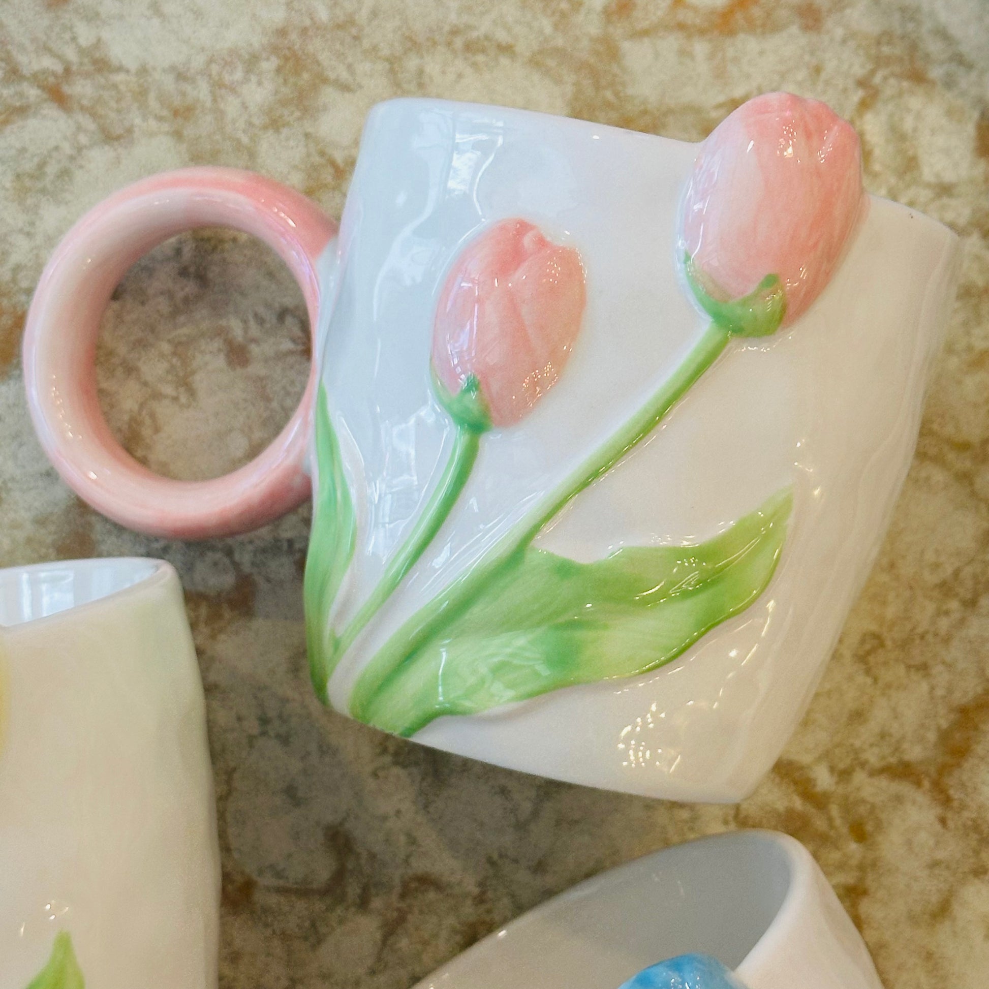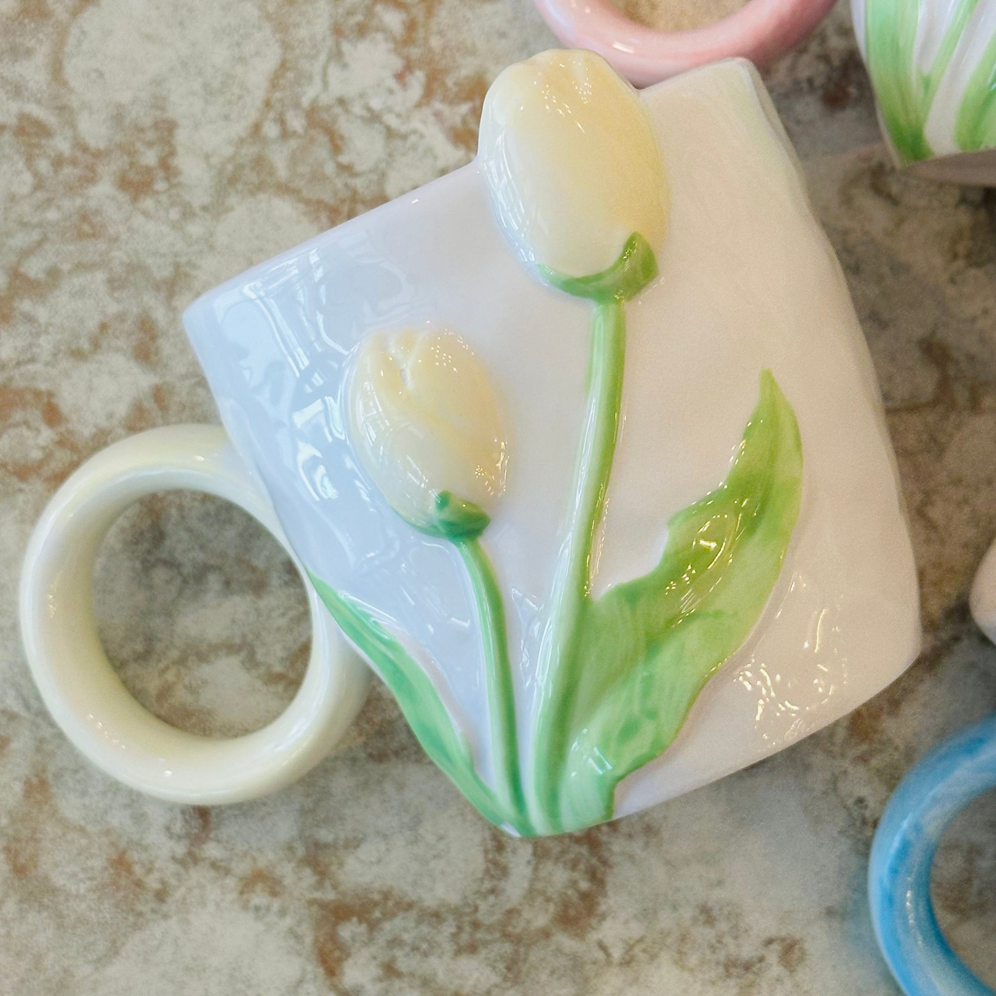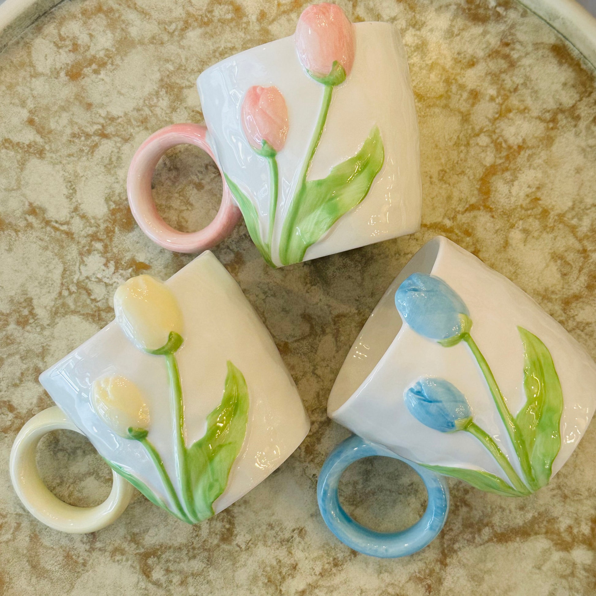 These stunning porcelain mugs with prudding 2D tulips adding complete beauty to the mug.