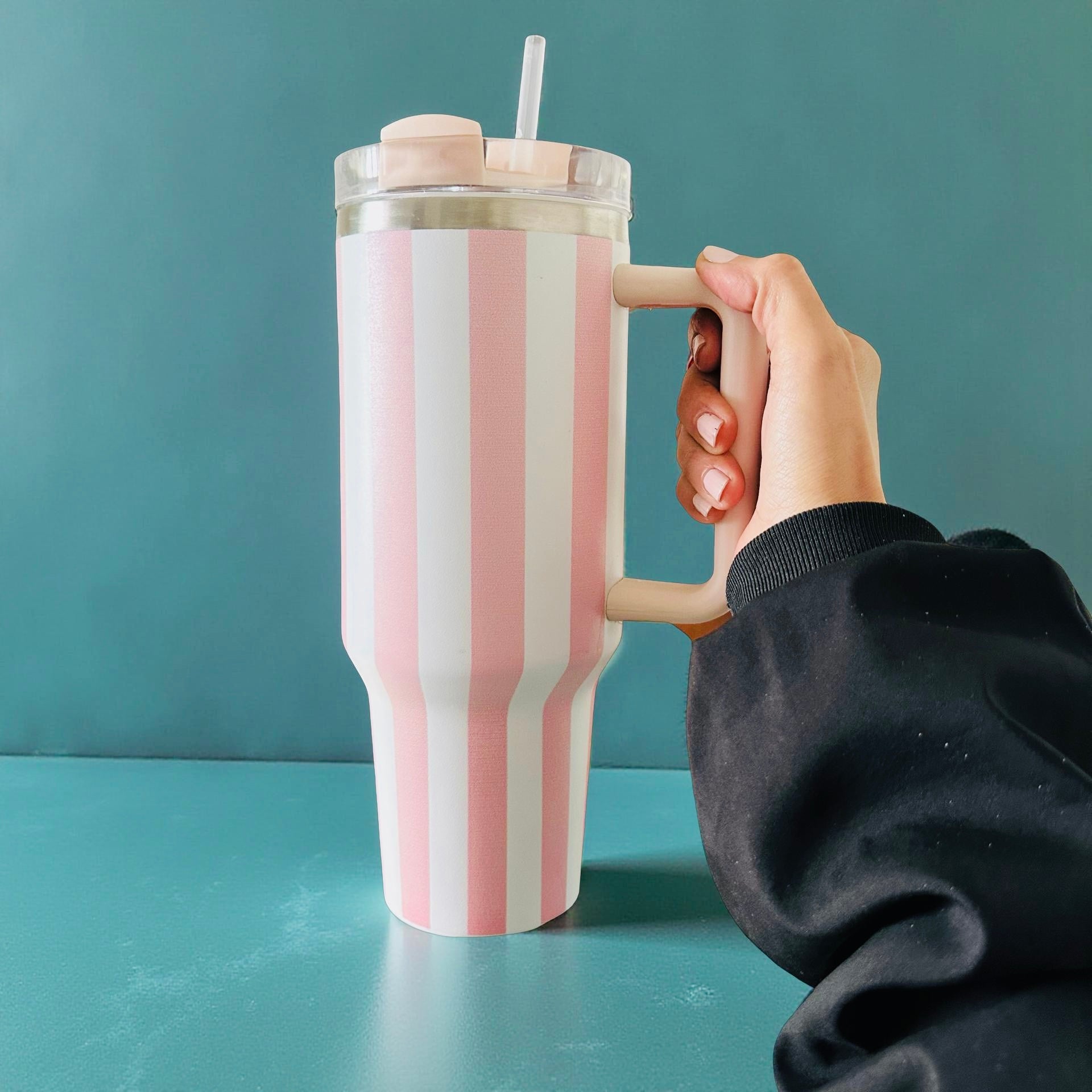 Soft pink and white stripes give this tumbler its quiet charm — fresh, calming, and timeless. It adds a touch of prettiness to your daily routine without being loud, making hydration feel a little more intentional and a lot more enjoyable.