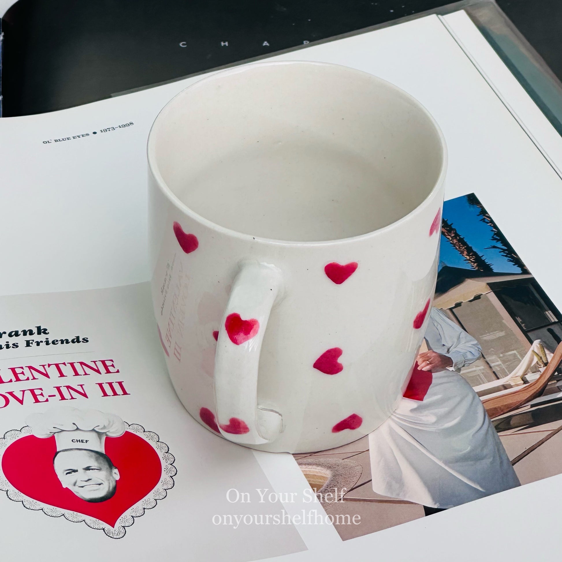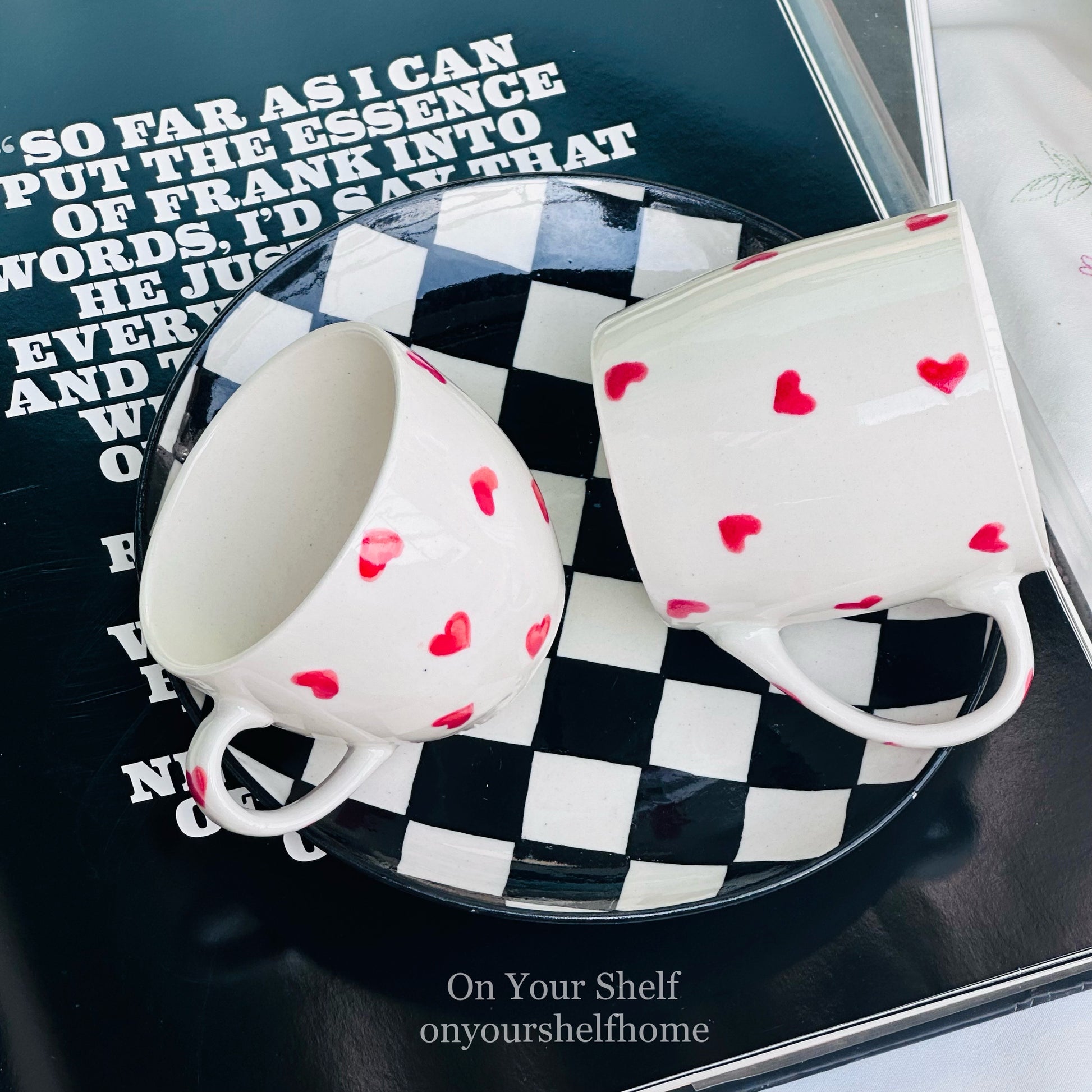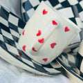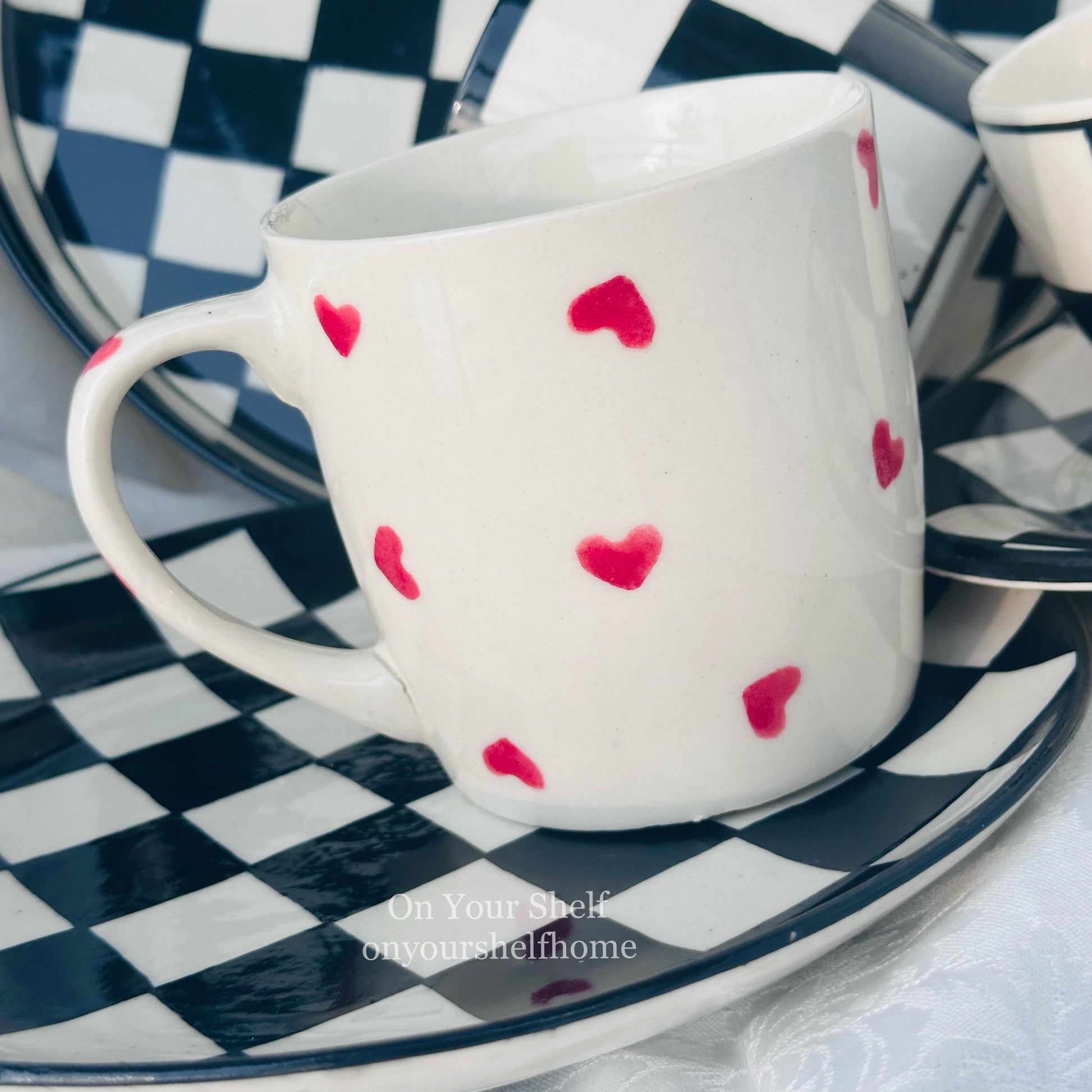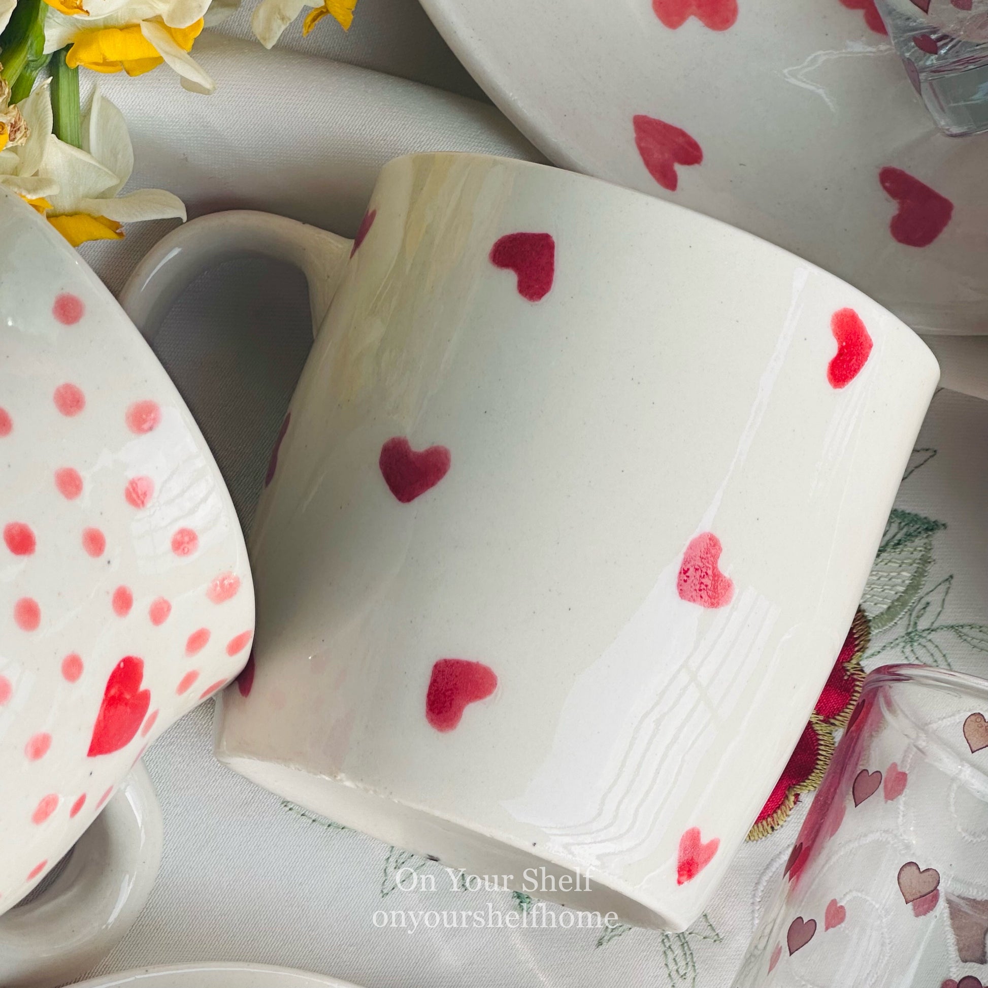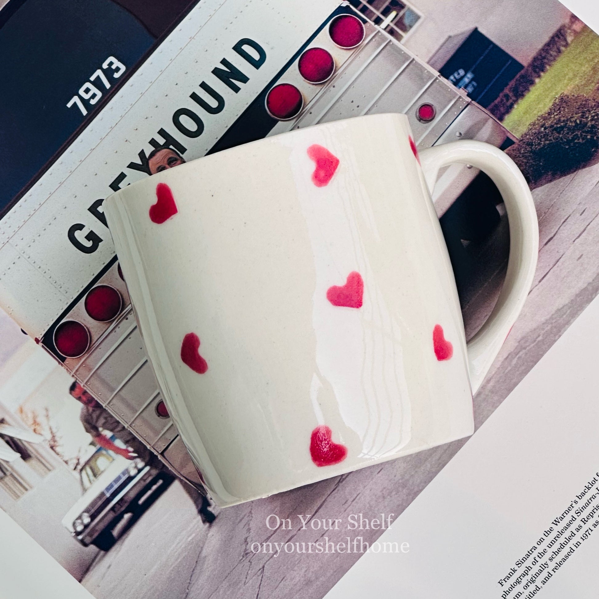 Each tiny red heart is hand-painted, making every mug one of its own kind—no two ever exactly the same, just like the love it carries.