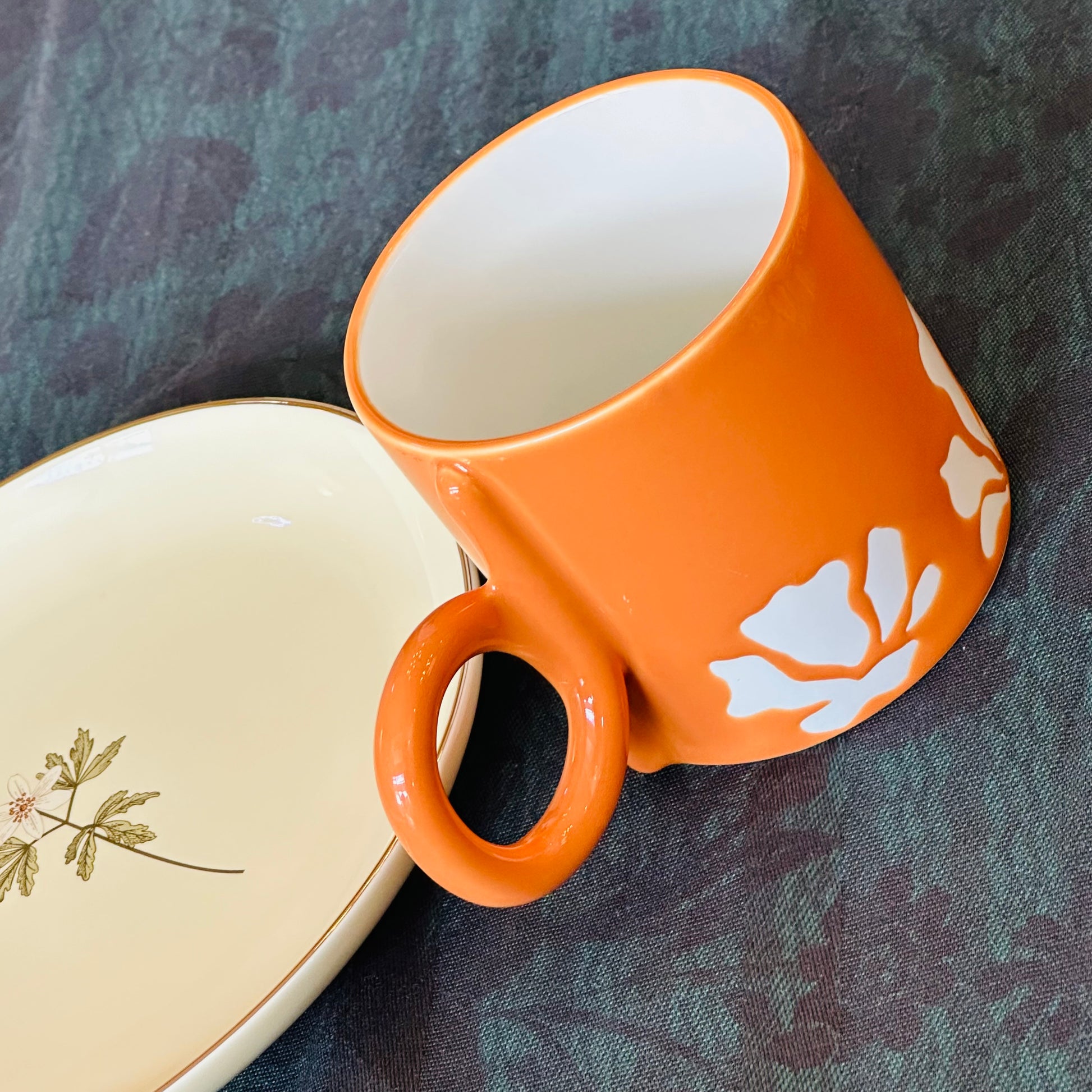 Warm, vivid, and quietly uplifting — The Orange Hour is a mug that captures that gentle pause between rush and rest. Its rich orange glaze feels like late-afternoon sunlight, softened by a clean white interior that keeps the look balanced and timeless. A subtle organic motif adds character without overpowering the form.