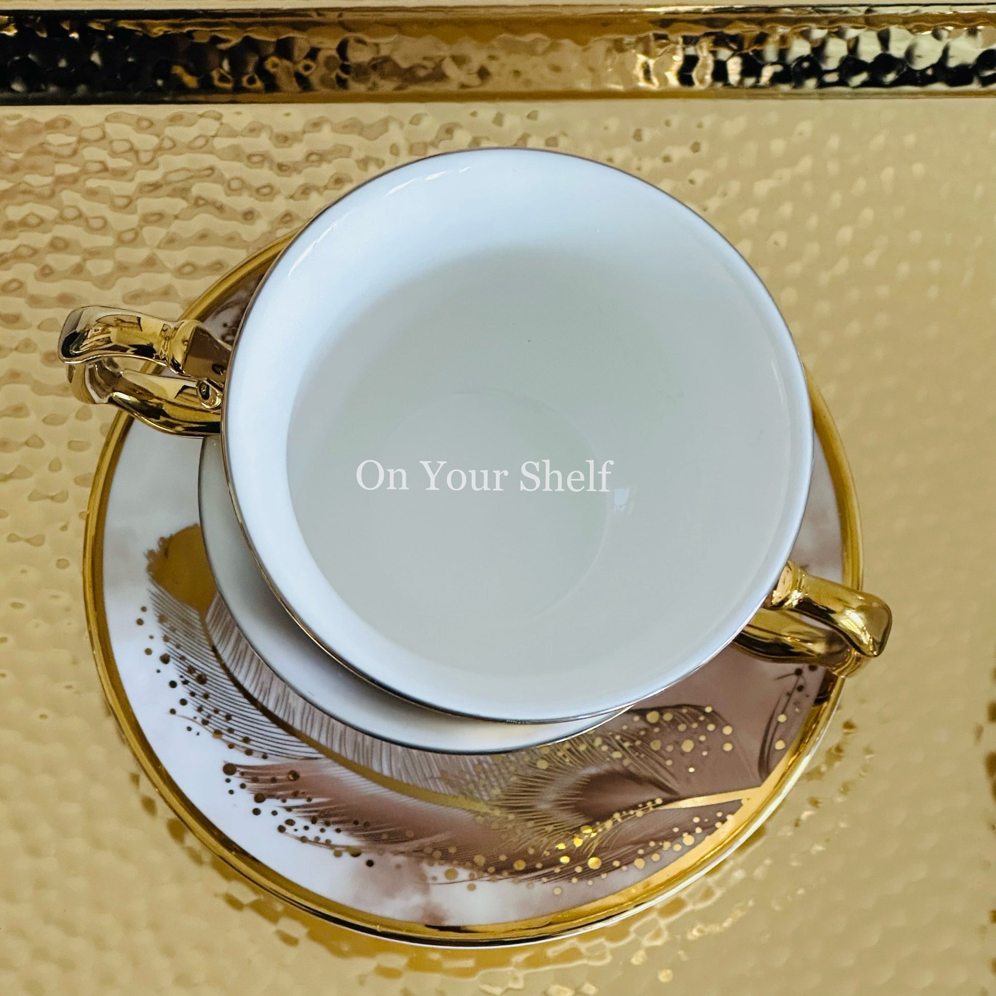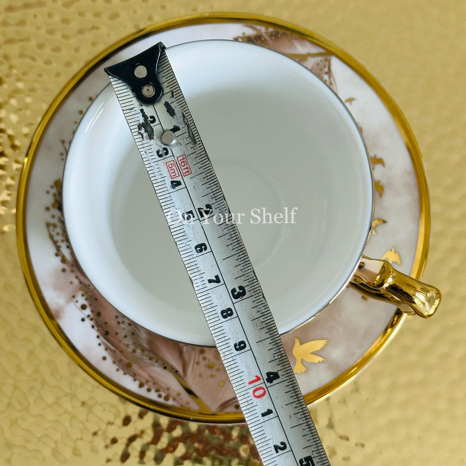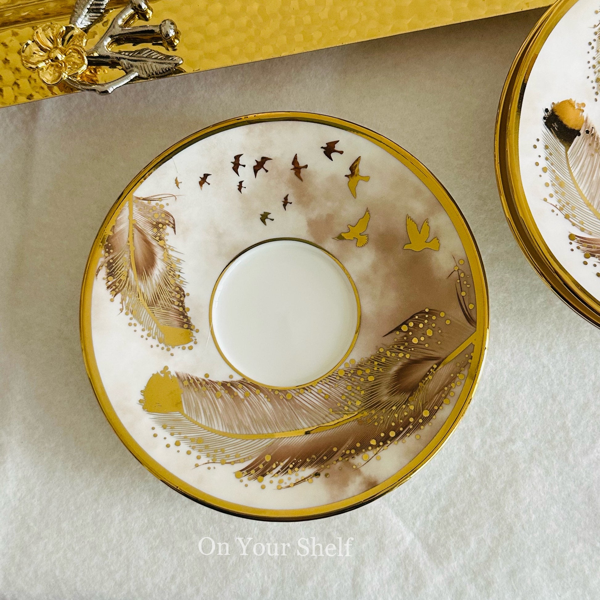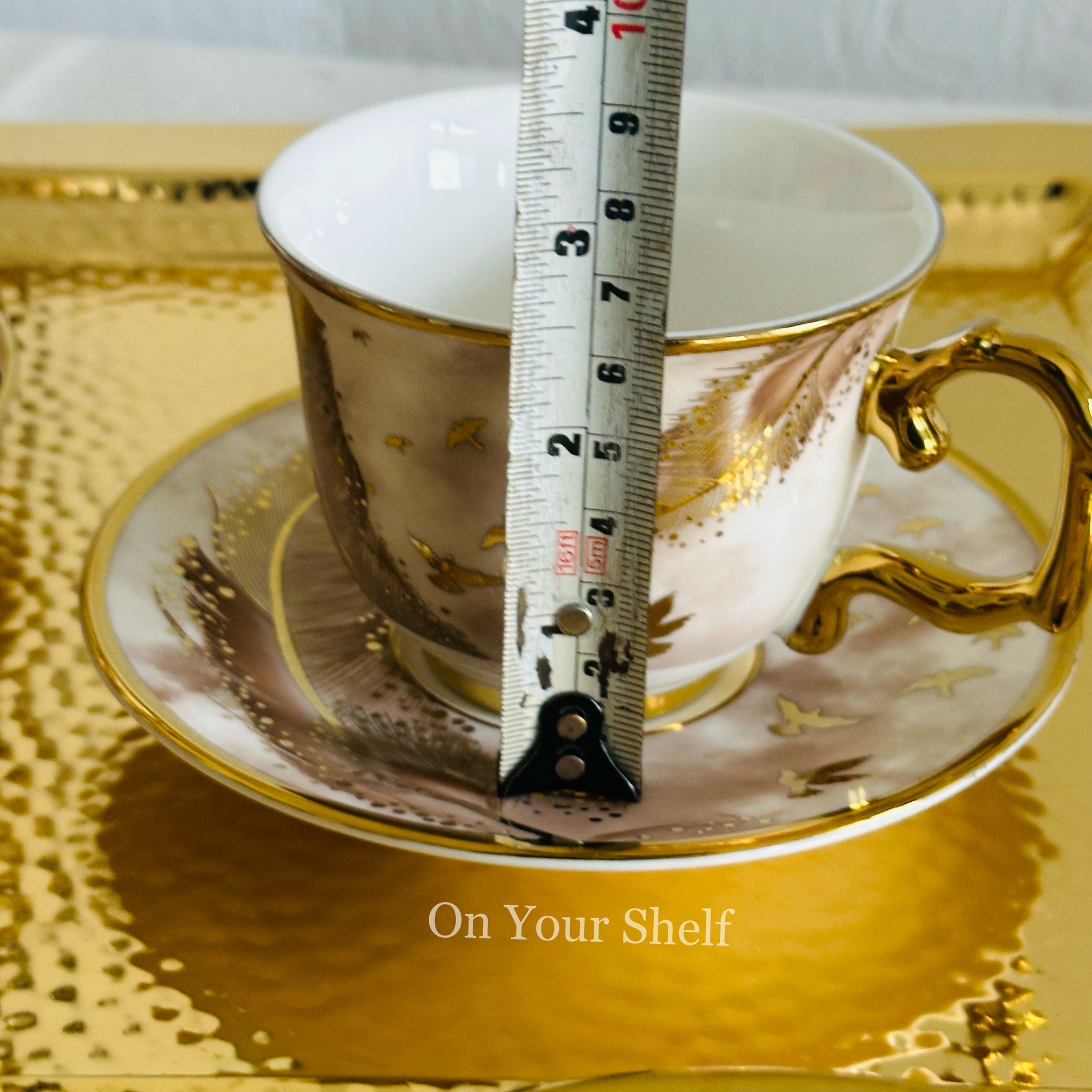 Made with high-quality porcelain, each cup features a stunning gold and white design of a soaring bird.
