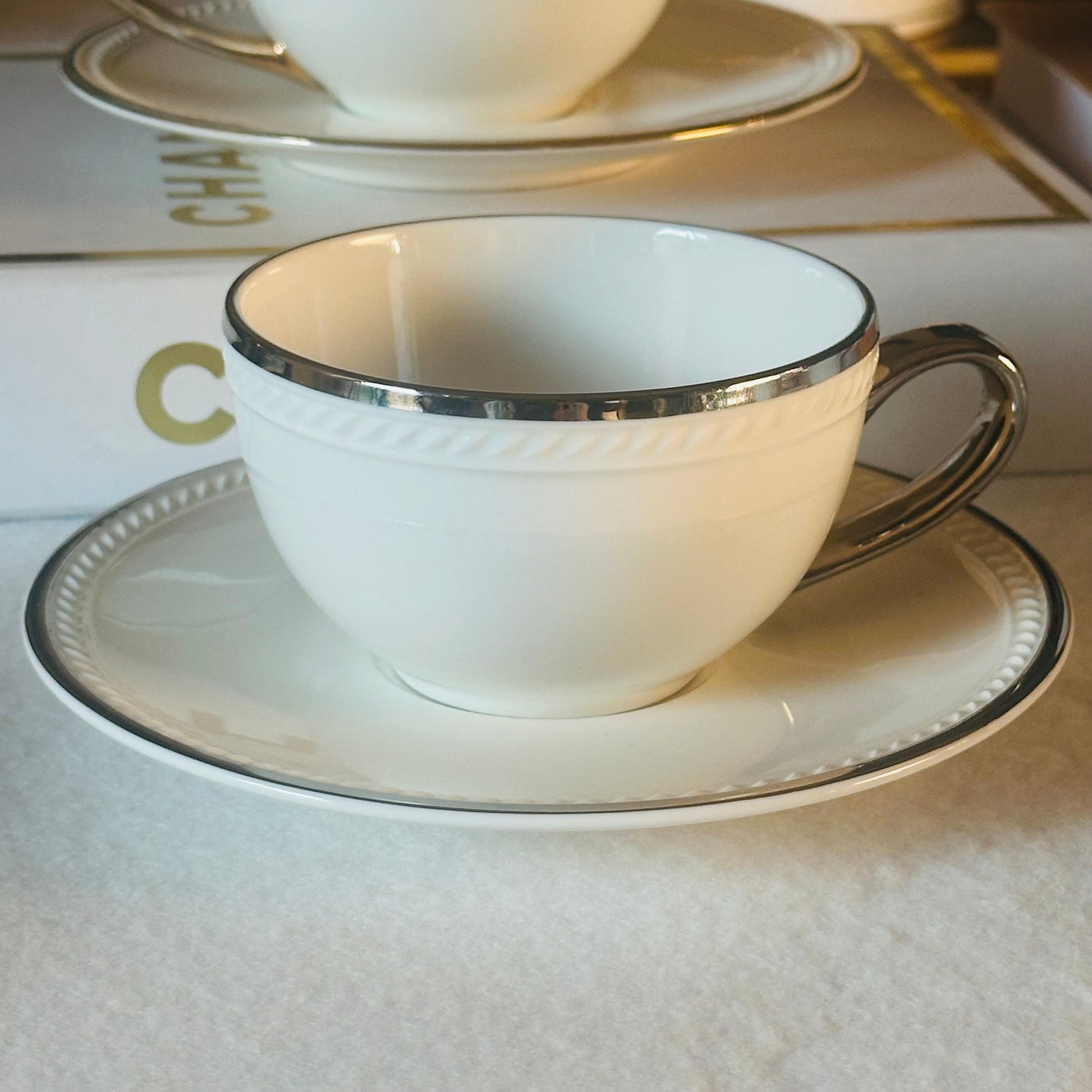 The White Evening Tea Cups (Set Of Six Tea Cups & Saucers)