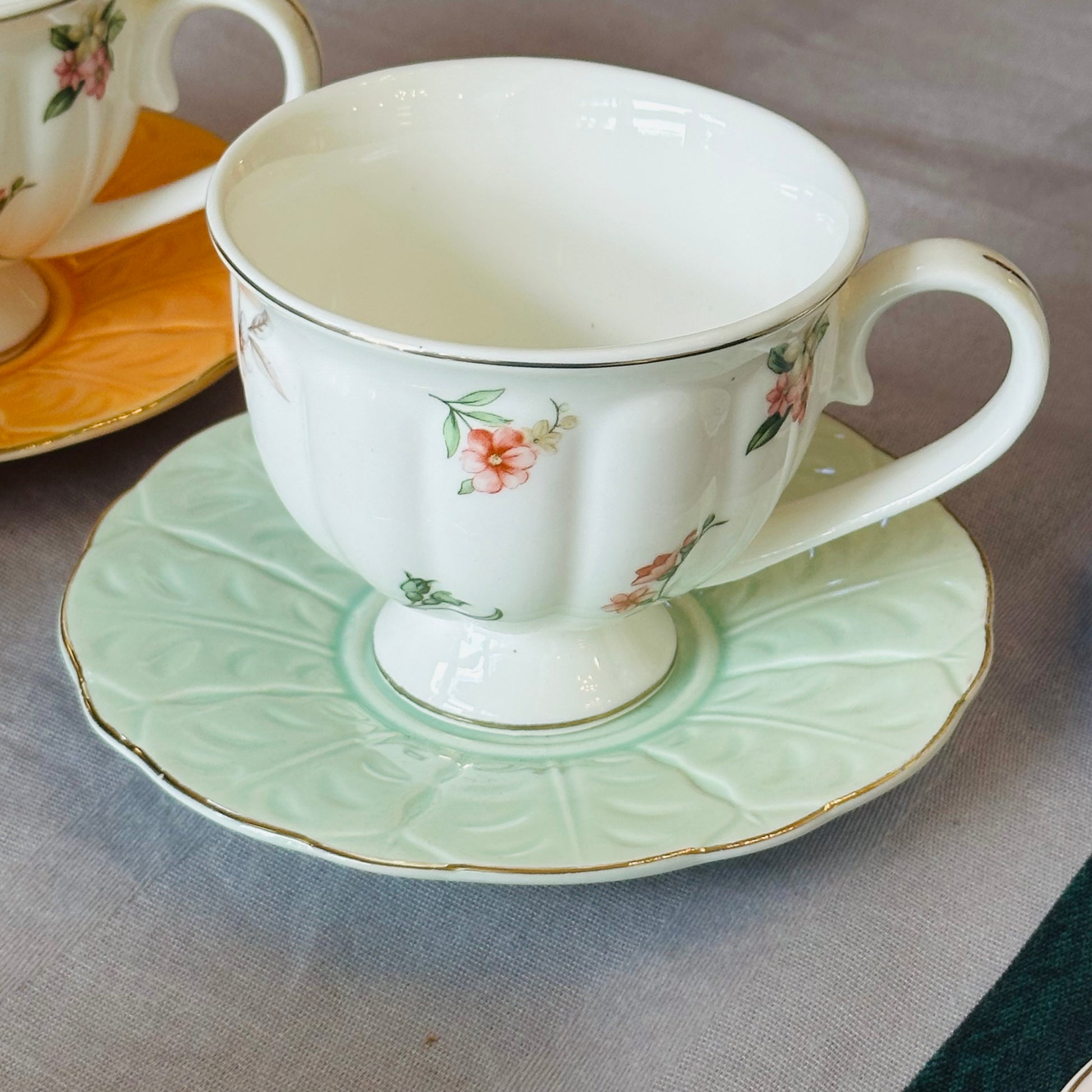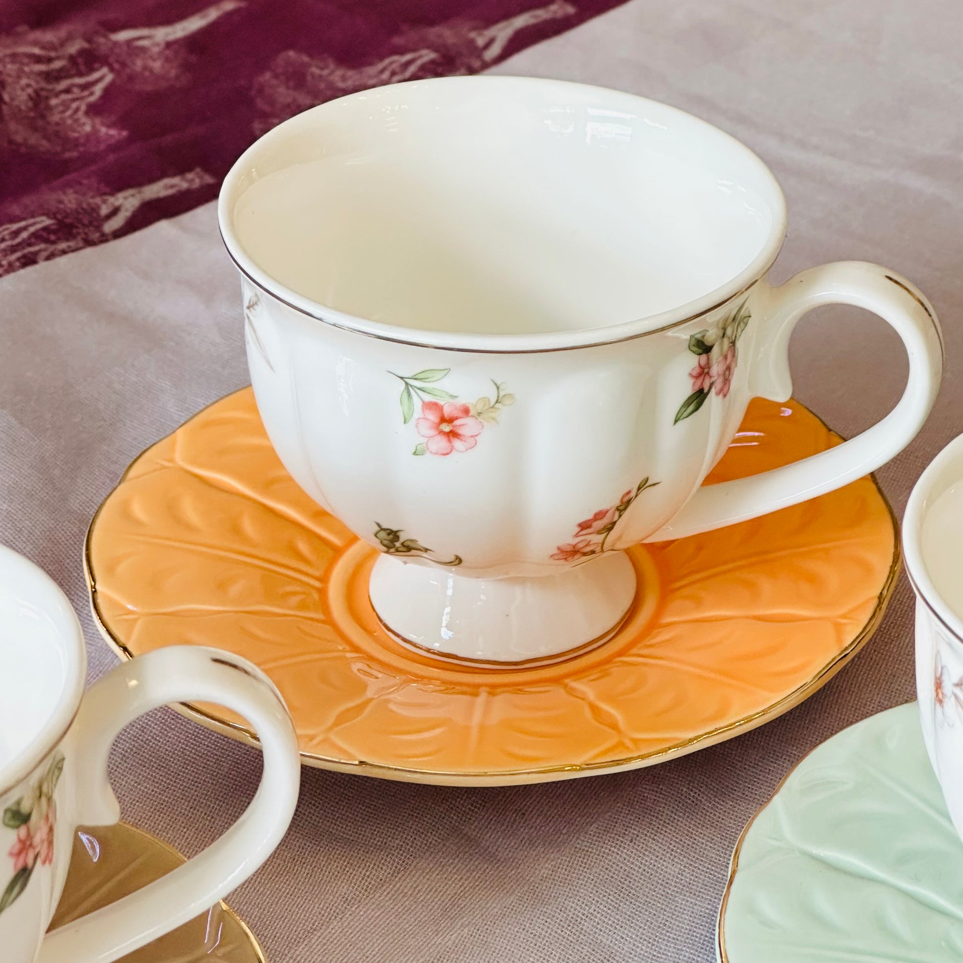 Pastel Daydream is a gentle escape into soft hues and delicate florals — created for moments that ask you to slow down, even when the day refuses to. The cups remain elegantly white, adorned with subtle floral details, while each saucer tells its own story in a different pastel shade, coming together like a quiet fairy dream.