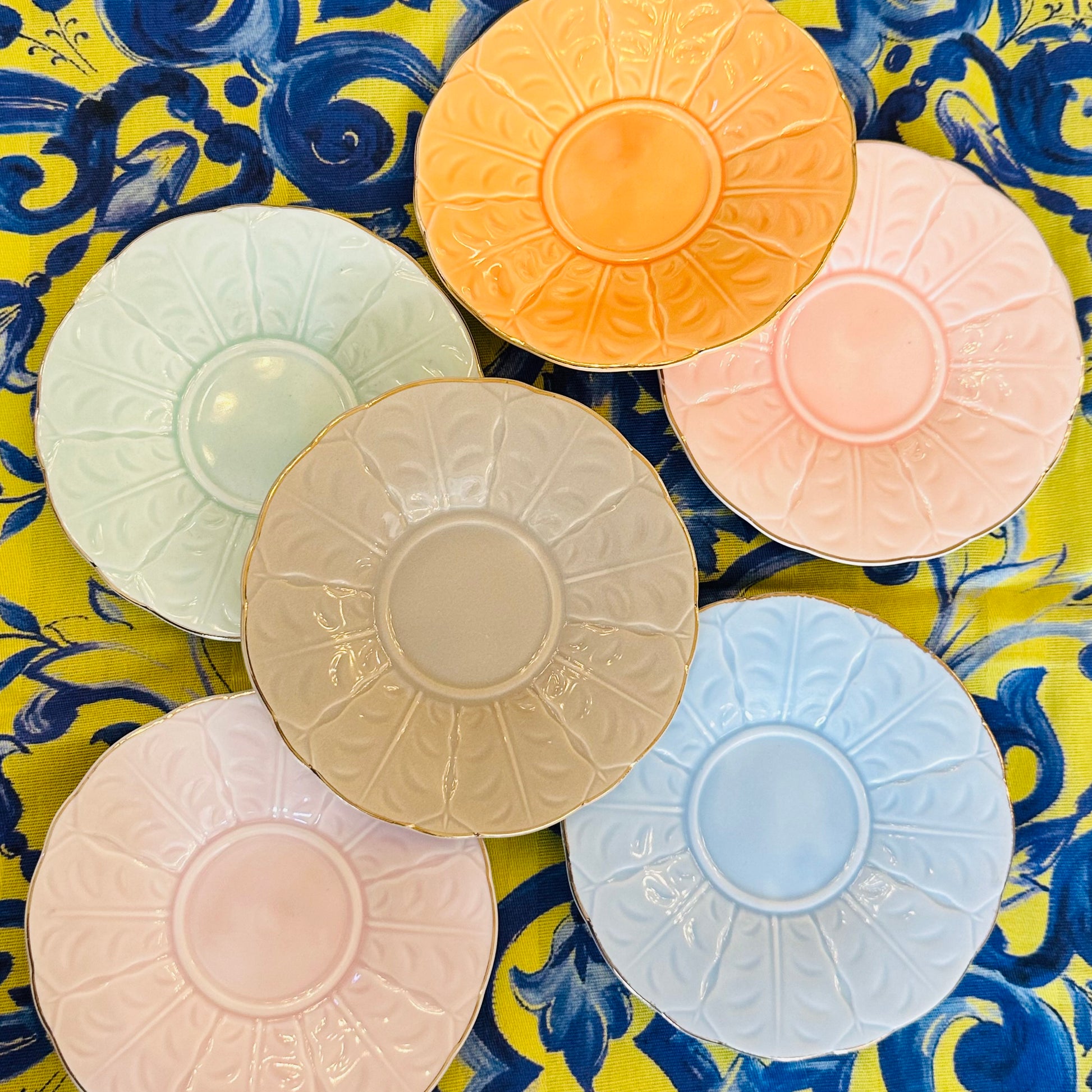 • 6 pastel saucers, each in a different colour