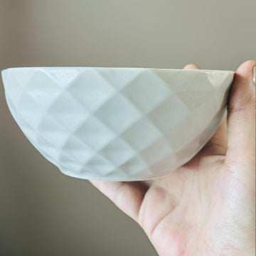 This White Diamond Cut Bowl is a stunning addition to any table setting. Crafted with precision, its unique diamond cut design adds a touch of elegance to your dining experience. Made of high-quality material, this bowl is durable and easy to clean. Perfect for serving salads, fruits, and more.