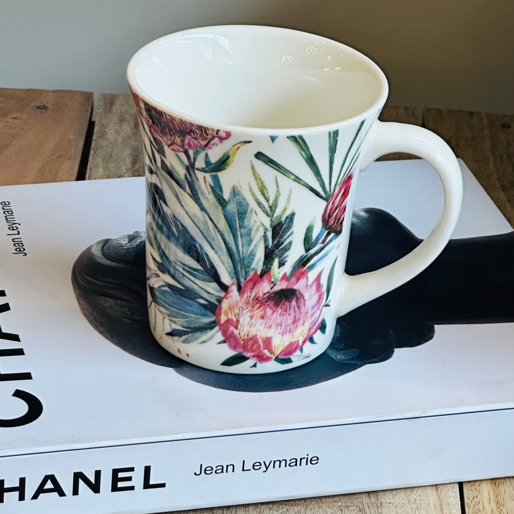 A tribute to untamed beauty, this mug features vivid proteas and lush greens, like a brushstroke straight from a jungle canvas. Bold and confident, it brings the wild edge of a botanical sketchbook to your table.